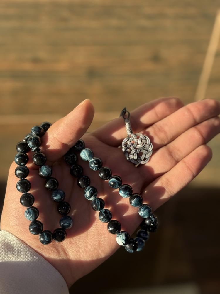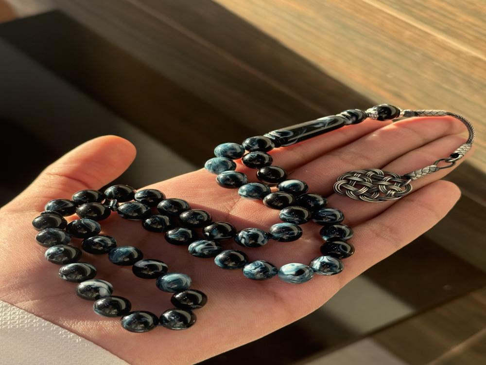 سبحة بكلايت خفيفة الوزن مصممة للاستخدام اليومي، تتميز بتصميم مريح وأنيق، عليها طربزونه فضه عيار 1000 تعطي جمال وفخامة.