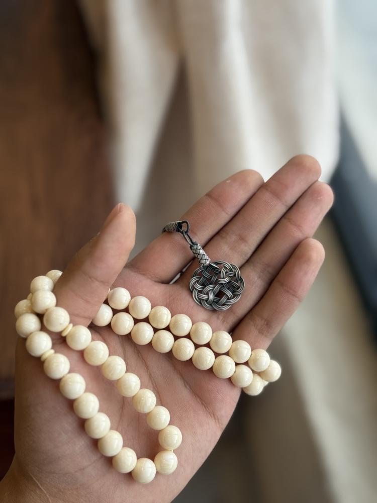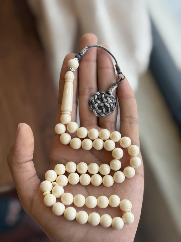 سبحة بكلايت خفيفة الوزن مصممة للاستخدام اليومي، تتميز بتصميم مريح وأنيق، عليها طربزونه فضه عيار 1000 تعطي جمال وفخامة.